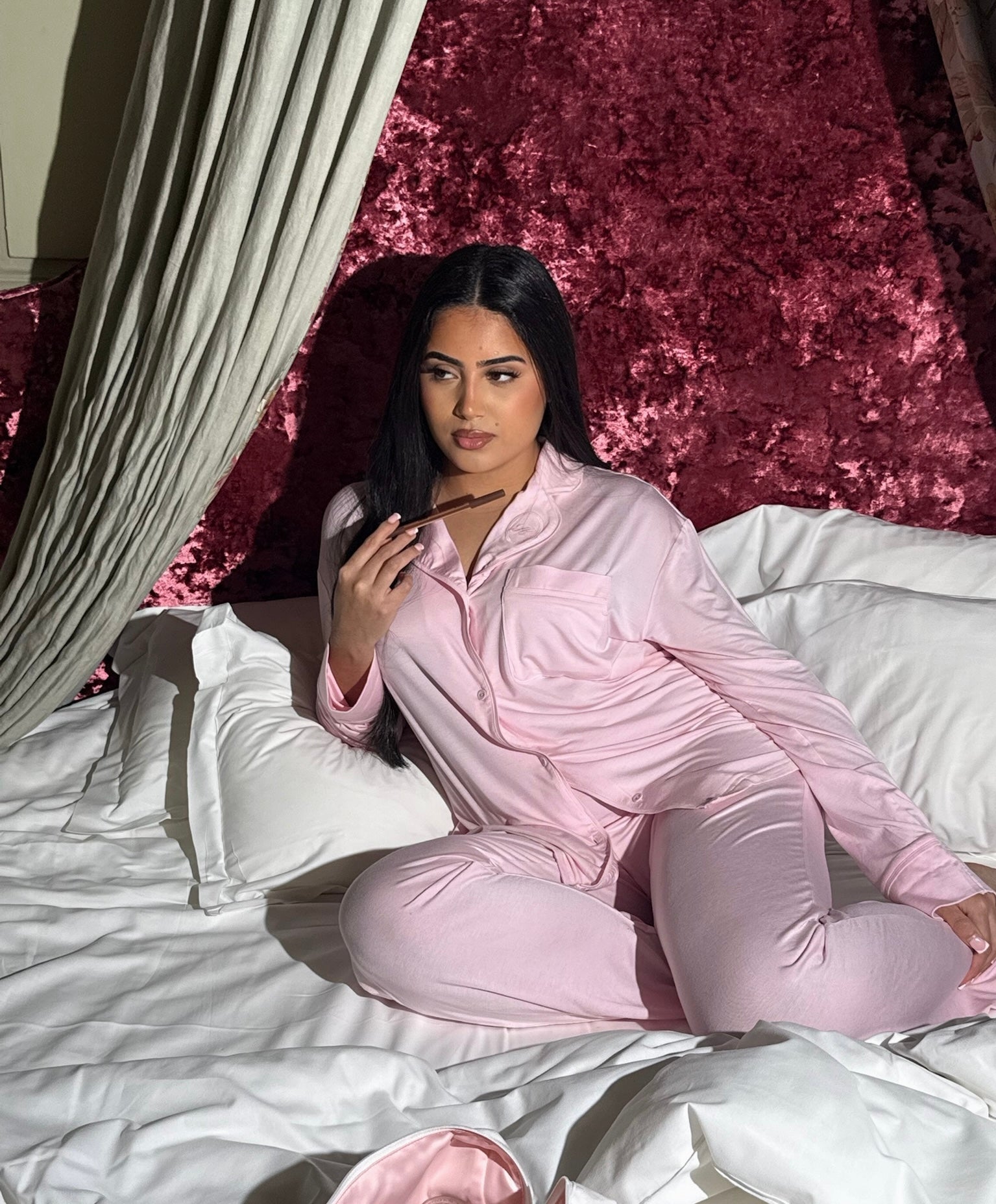 À travers nos pyjamas, j’ai voulu créer plus qu’un vêtement : une invitation à se retrouver, à s’aimer, à prendre soin de soi, & à être féminine même à la maison.